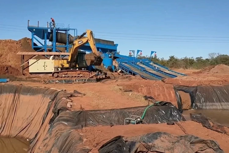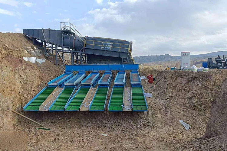 Мобилна фабрика за ископување злато: Тоа е главна опрема за копнено ископување злато со плацер, со флексибилно преместување. Ги интегрира функциите на целосниот процес на хранење, скрининг и раздвојување злато. Откако камењата ќе се отстранат со прекривката, кашеста маса на рудата потоа се одвојува со опрема како што се кутии за шлаг и центрифугални концентратори.